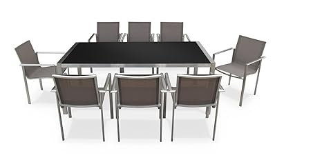 Alice’s Garden – Salon de jardin places – Courchevel – table en Inox verre, fauteuils en textilène gris et noir: Amazon. Prix Alice’s Garden – Salon de jardin 8-places – Treviso – Coloris. Courchevel – table en Inox verre, fauteuils en textilène gris et noir . ELIXIR Salon repas MILANO personnes résine tressée coloris gris taupe (5). Salon de jardin TEMPO personnes alu et plateau verre trempé mm coloris.
